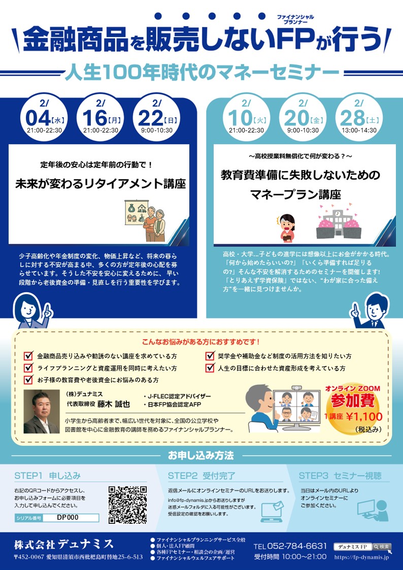 2025年2月2日 | ライフ&マネープランセミナー | 主催:名古屋市緑図書館 |