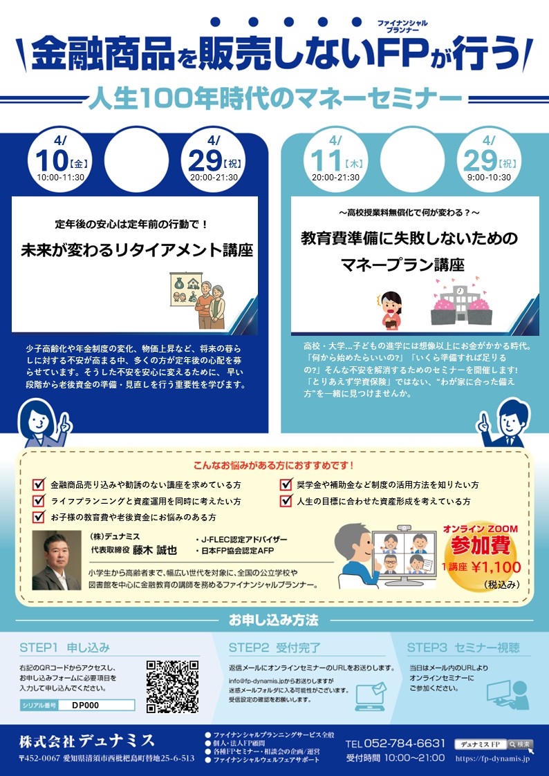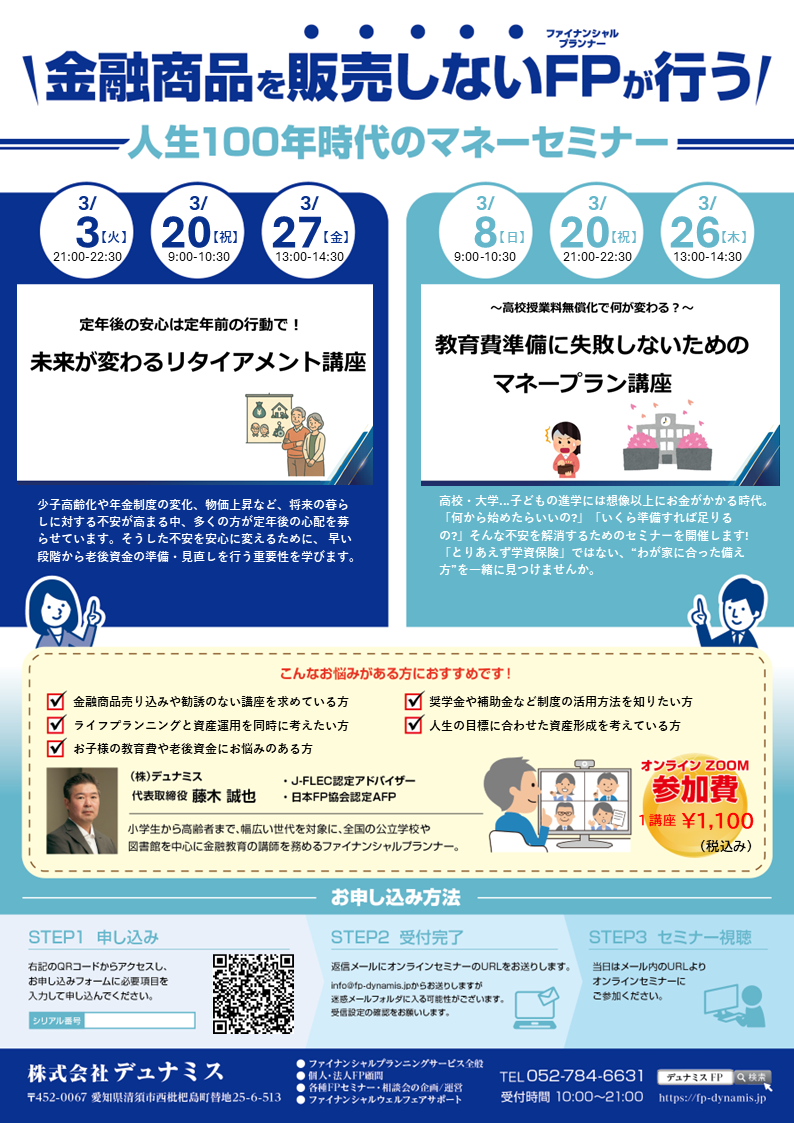 2025年3月9日 | ライフ&マネープランセミナー | 主催:名古屋市徳重図書館 |